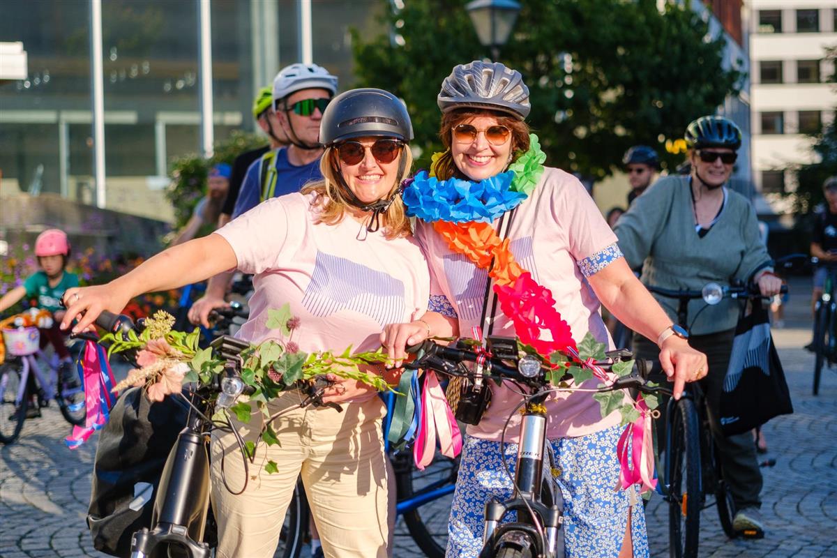 Gunn Claire deltok sammen med samferdselsdirektør Stine Haave Åsland. Begge hadde pyntet både seg selv og syklene for anledningen.