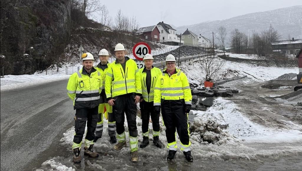 - Nå er entreprenør Brødrene Selvik AS i gang med anleggsarbeid ned mot Storelva, og her er det lysregulert for biltrafikk og åpent fortau for gående.