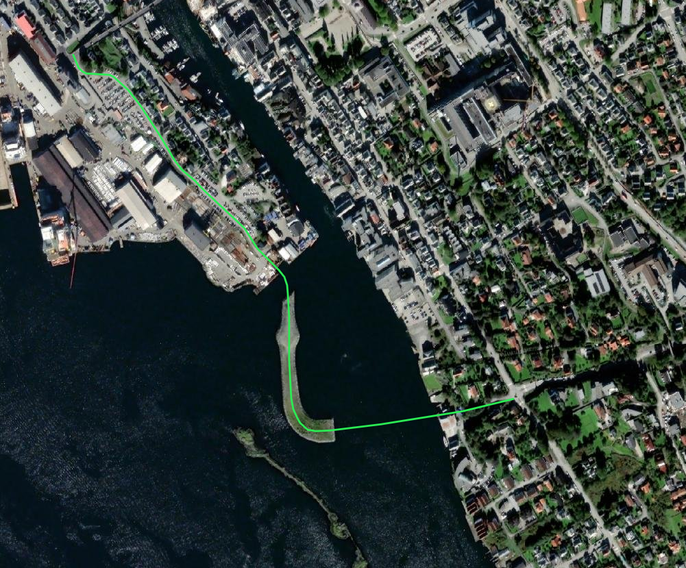 Kartutsnitt som viser traséføring for nye Risøy bru