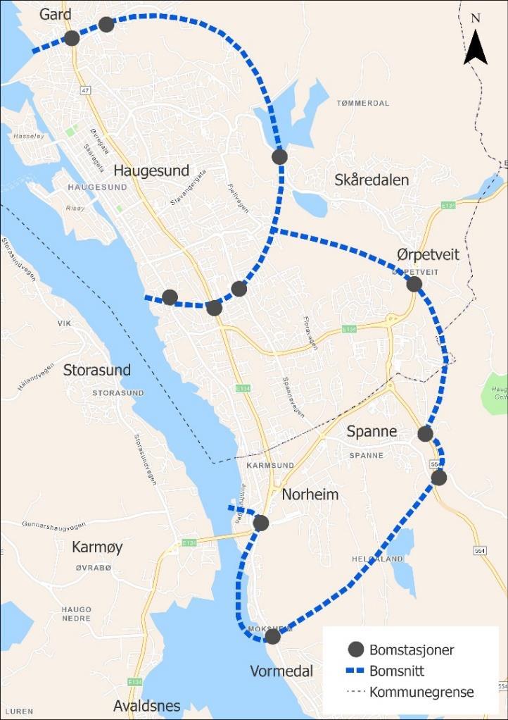 Bomstasjonen ved Toskatjørn flyttes til E134 ved Biltema, og i stedet for de tidligere bomstasjonene på øysiden av Karmøy, kommer det nå fire nye stasjoner på fastlands-siden. Det kommer også