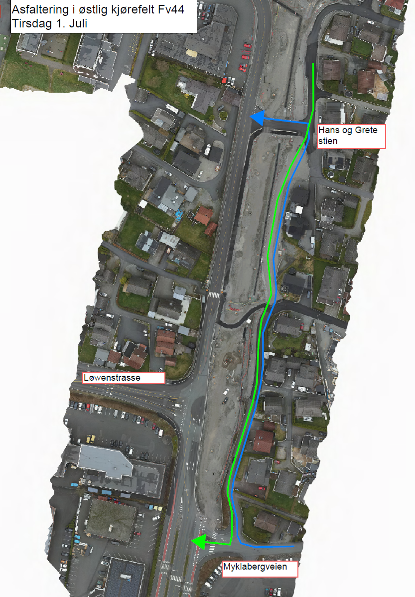 I Kari Trestakk vei er vi nå ferdig med å bytte ut de kommunale vannrørene og veien er bygget opp igjen. Her gjenstår kantstein og asfaltering som ikke har vært mulig å starte opp på grunn av frost i bakken. Entreprenøren starter opp med å sette kantstein denne uken. På grunn av frostperioden som har vært, har asfaltentreprenøren et stort etterslep og vi får ikke asfaltert før jul. Asfaltering er planlagt 03.01.24. Det blir lagt 1 lag asfalt i første omgang.