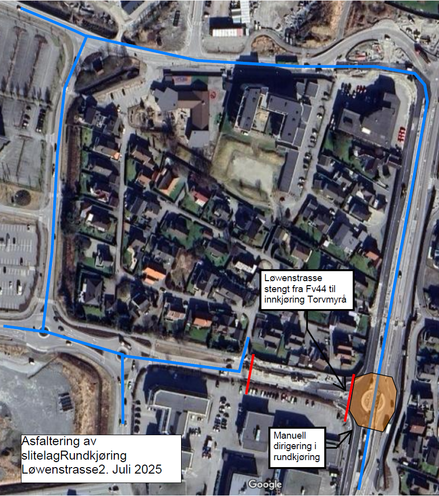 Arbeidet med ny overvannsledning i fylkesveien/Forussletta pågår for fullt. Den nye overvannsrørledningen går fra krysset Midtbergmyrå/Forussletta og frem til krysset Løwenstrasse/Forussletta. Den nye overvannsrørledningen har en diameter på 1,6 meter og vil forbedre overvannskapasiteten i området. Entreprenøren etterfyller grøften etterhvert som de legger rørene. Dette arbeidet innebærer en god del komprimering. Grøften er 5 meter dyp og for hver meter masse som fylles igjen, må det komprimeres. Arbeidet med grøften er estimert å pågå ut januar.