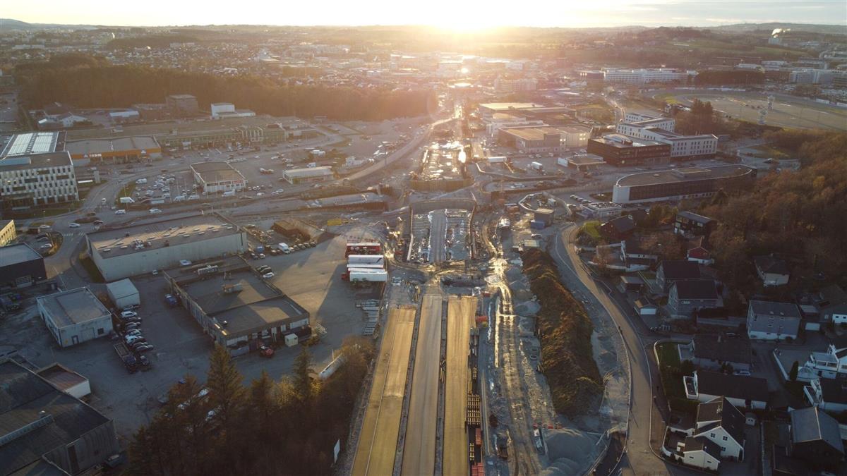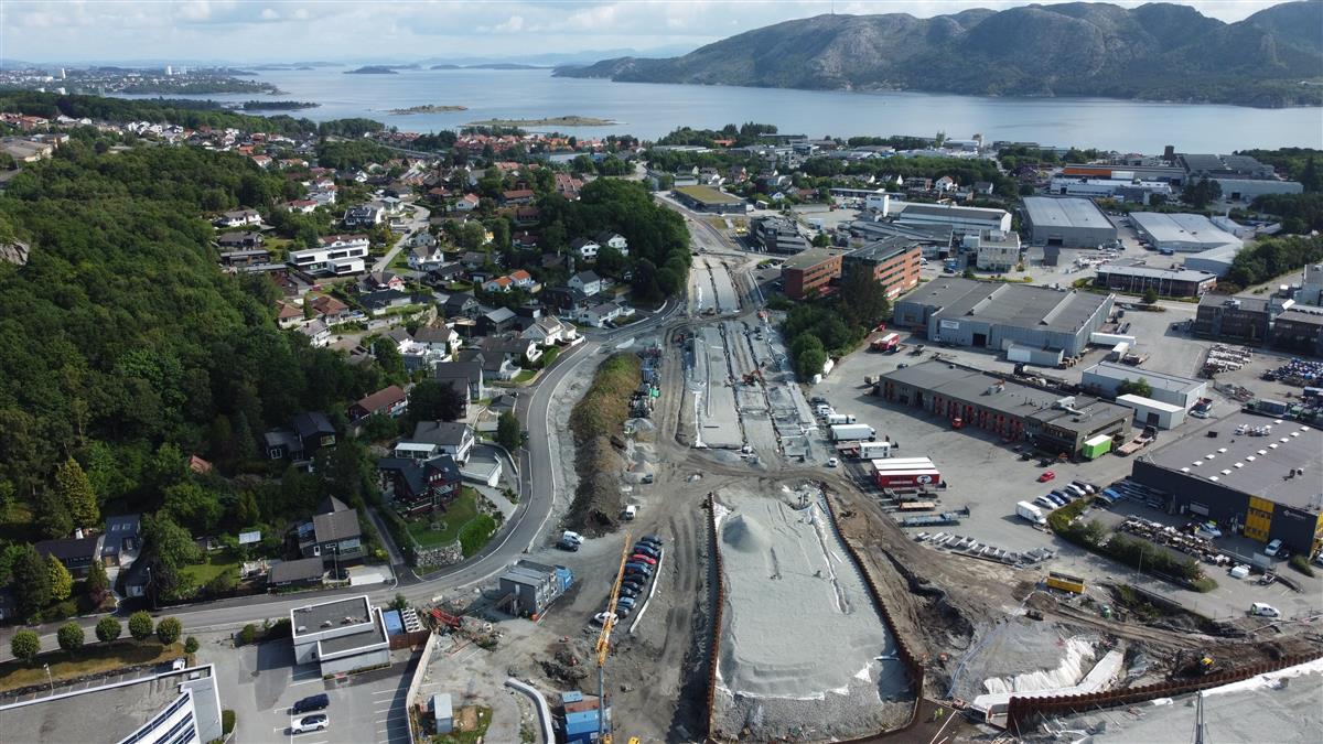 Vi er snart halvveis i anleggsarbeidet på strekningen mellom Nådlandsbråtet og Hans og Grete stien på Forus. Så langt er vi i rute til ferdigstillelse september 2025.