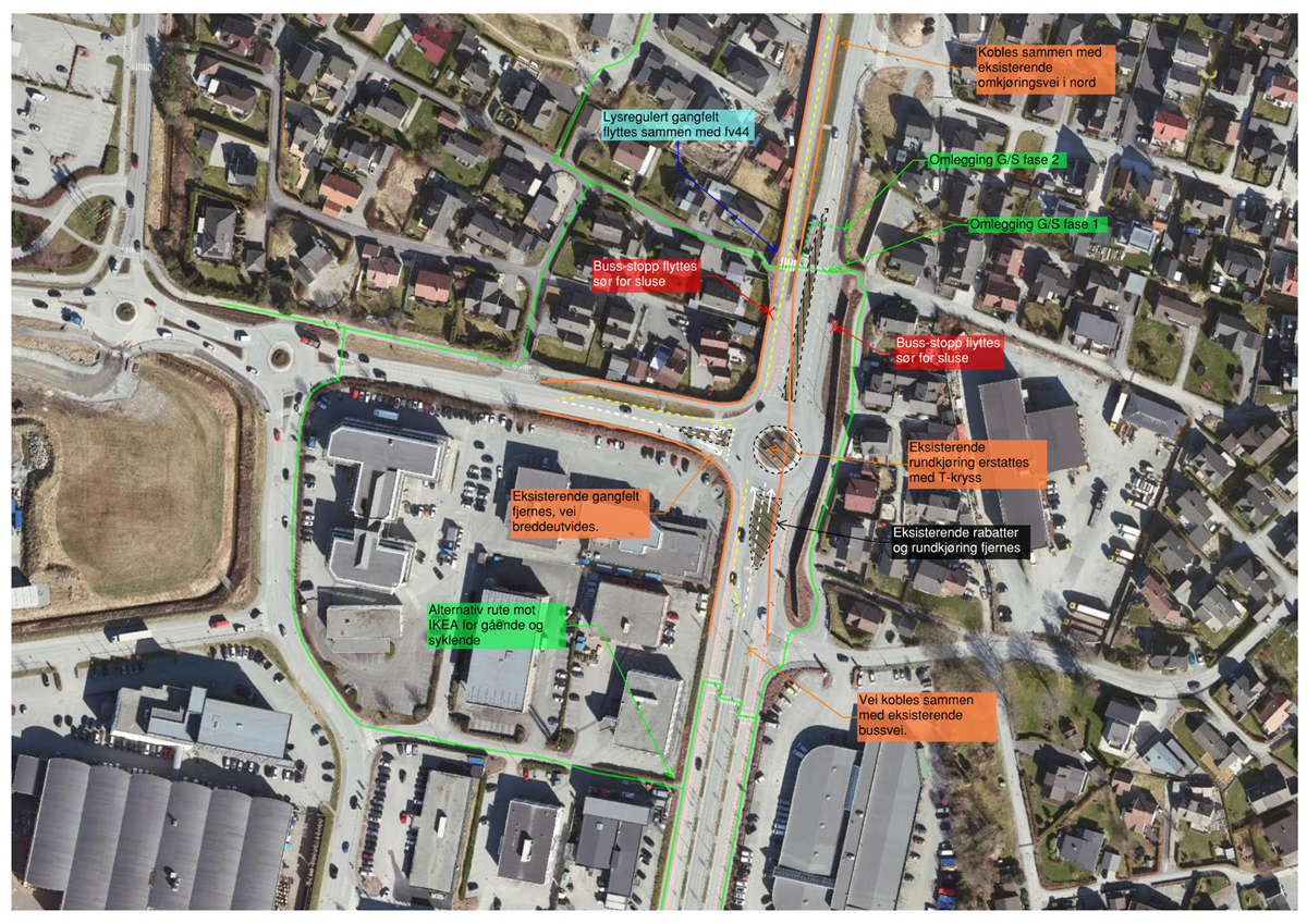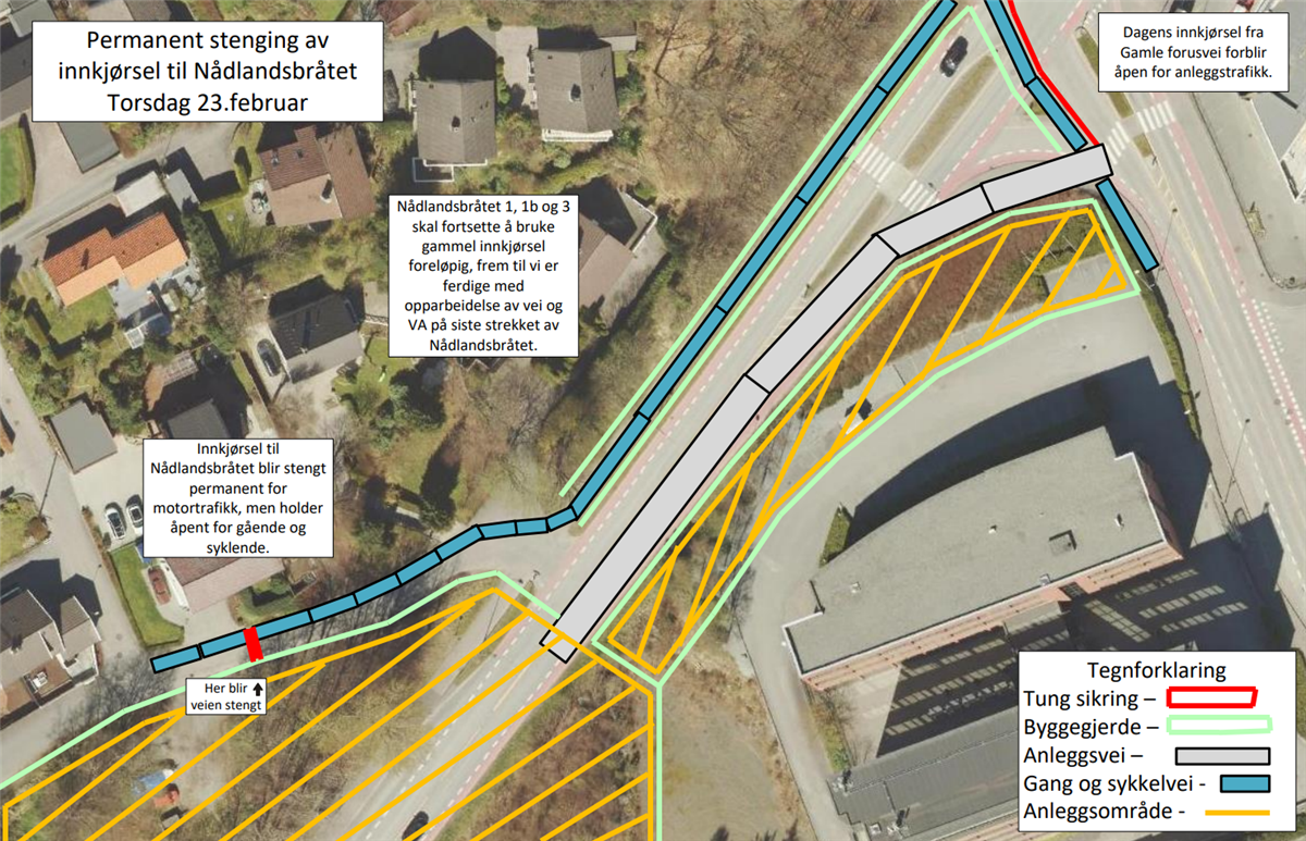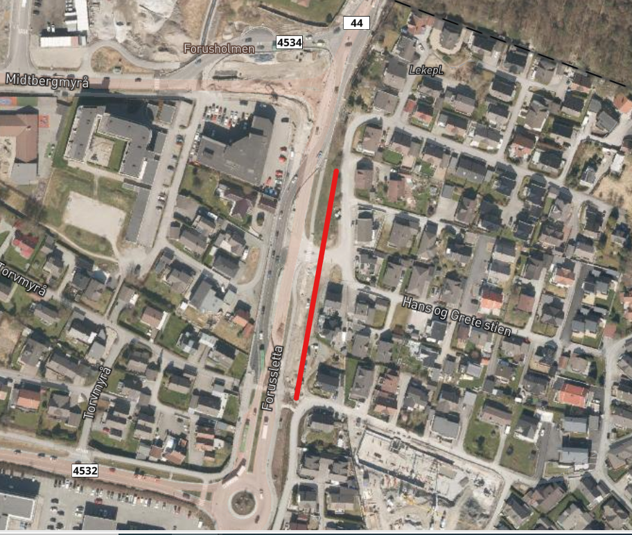 Etter at overvannsledningen er byttet, ut starter entreprenøren med vegoppbygging. Arbeidet på østsiden av fylkesveien/Forussletta vil fortsette frem til veien er ferdig opparbeidet med kantstein og asfalt, omtrent september 2024. Da legger vi trafikken over på den ferdige veien og starter med å bygge Bussvei på vestsiden av fylkesveien.