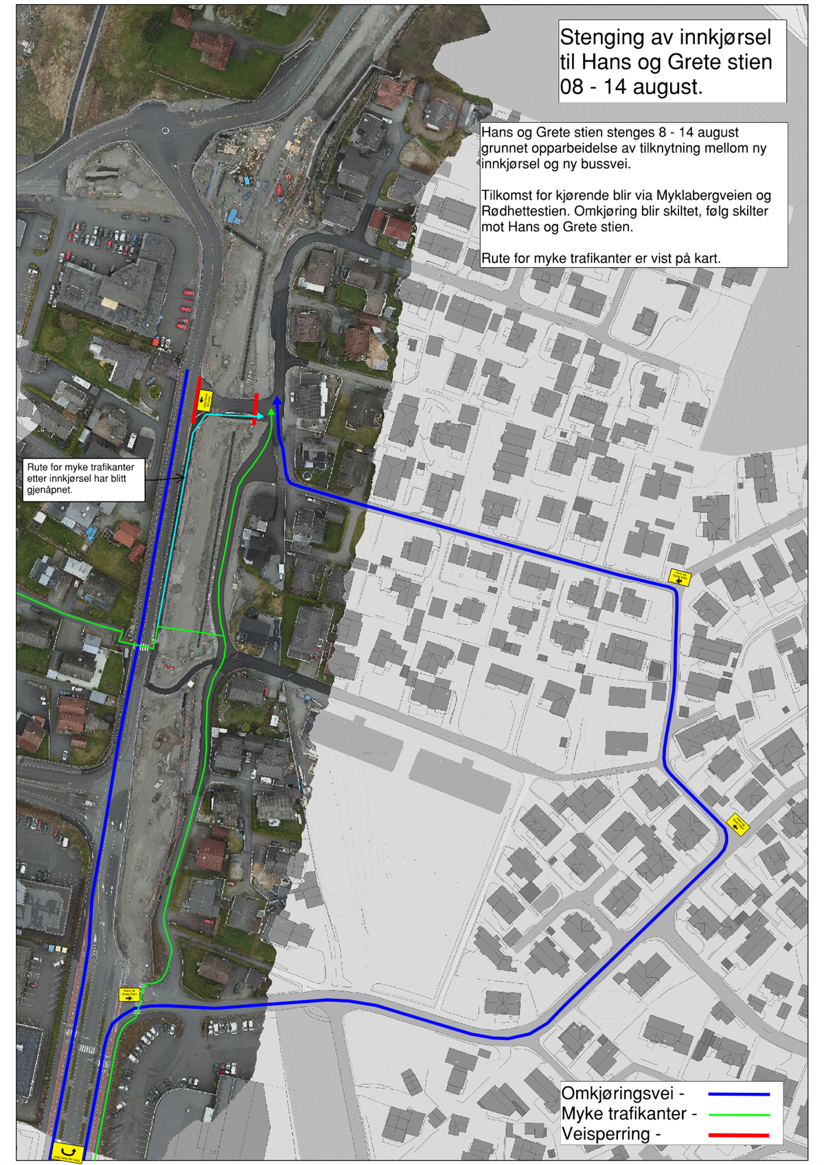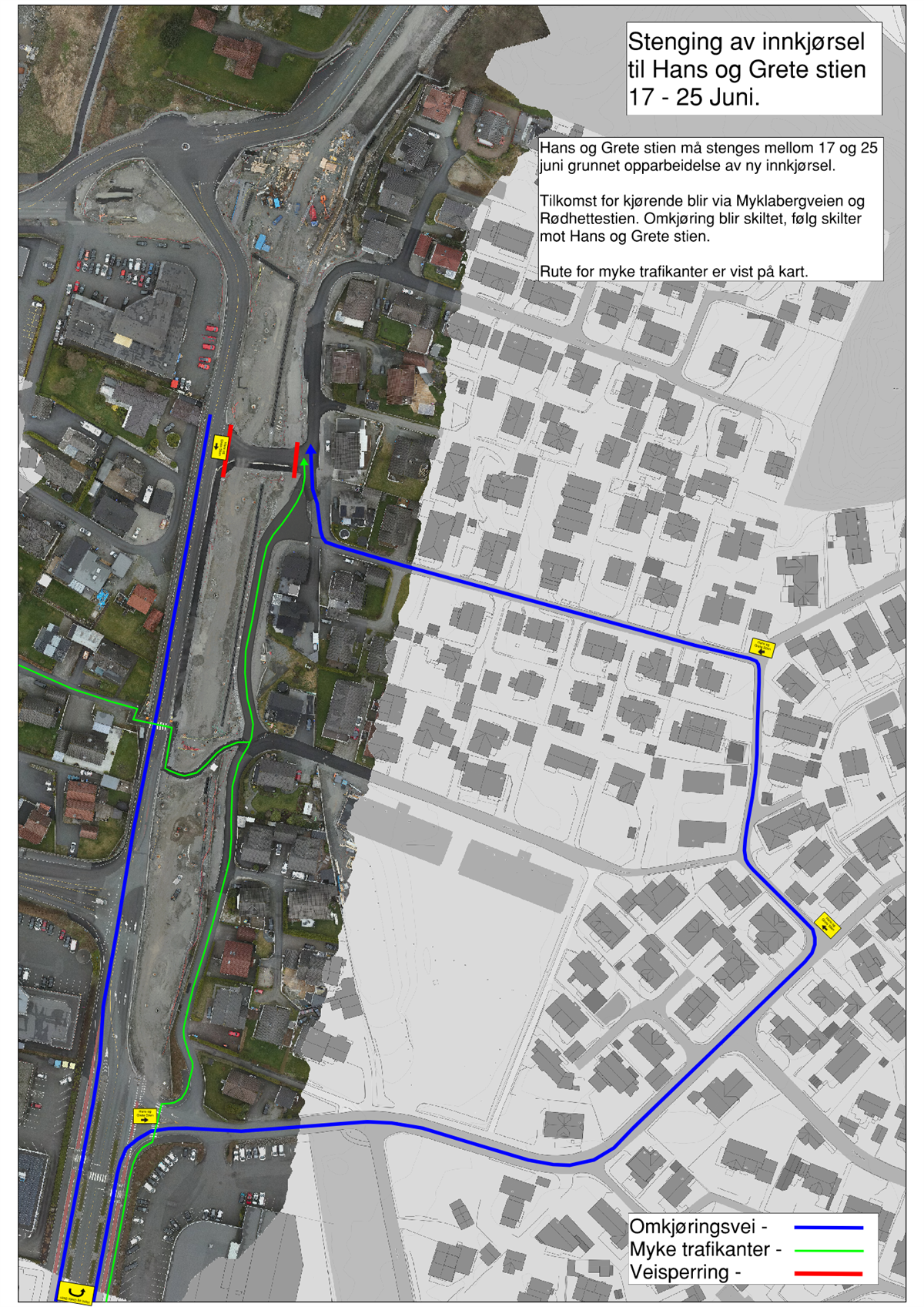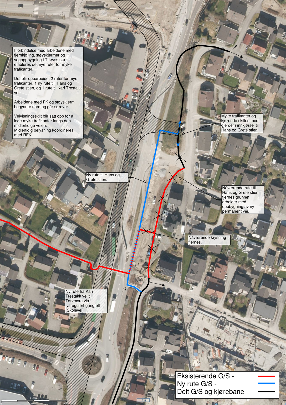 Denne uken skal vi være ferdige med arbeidet med å bytte ut kommunale vann- og avløpsrør i Hans og Grete stien. På grunn av den kalde perioden vi har hatt, er det frost cirka 50 cm nedover i bakken. Så snart frosten gir seg, starter Grunn-Service med oppbyggingen av den nye kommunale veien som skal knyttes sammen med Kari Trestakk vei i sør. De begynner lengst nord i Hans og Grete stien, i svingen mellom nr. 30 og 39 og jobber seg sørover mot Kari Trestakkvei. Arbeidet med å bygge opp ny vei i Hans og Grete stien helt bort til Kari Trestakk vei, vil pågå frem mot neste sommer. Da skal veien stå ferdig med kantstein, asfalt og støyskjerm.