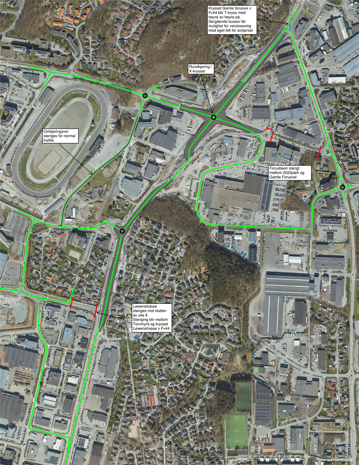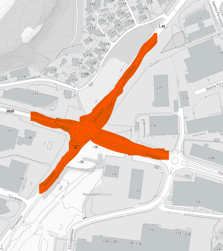 Deler av Forusbeen som går vestover mot motorveien, er ferdig bygget og asfaltert med 2 lag. Det neste som skjer på denne strekningen er at vi skal bygge om rundkjøringen i krysset Forusbeen /Bjødnabeen. Dette arbeidet skal etter planen starte opp i løpet av januar. Før arbeidet kan starte her må Lyse flytte noen høyspentkabler. Vi kommer med mer informasjon om hvordan trafikken legges om når det nærmer seg oppstart av arbeidene.