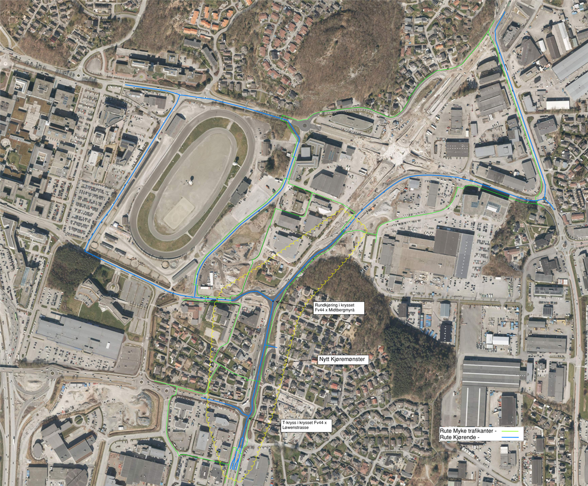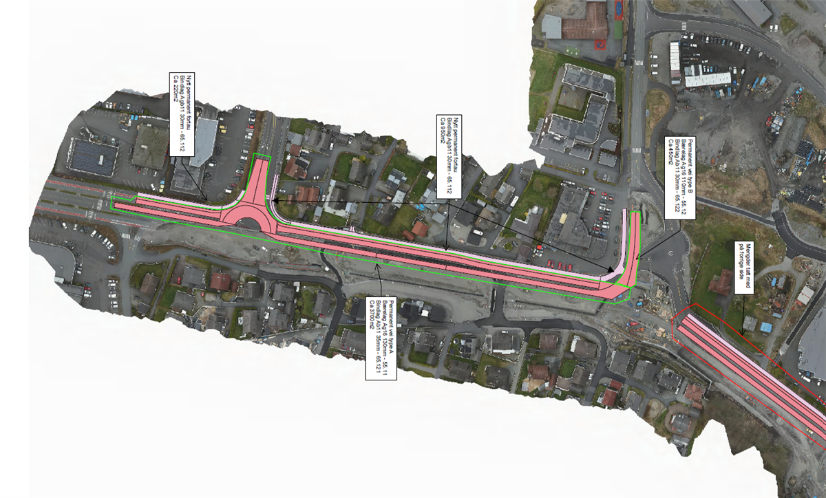 I den sørgående armen av Bussveien har vi begynt å fjerne asfalt. Etter jul skal det graves ned avløp for overvannsnettet. Deretter begynner entreprenøren med igjenfylling og veioppbygging.