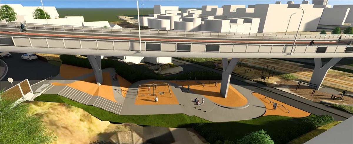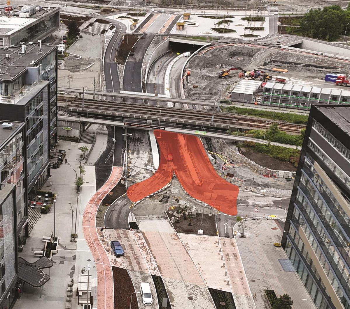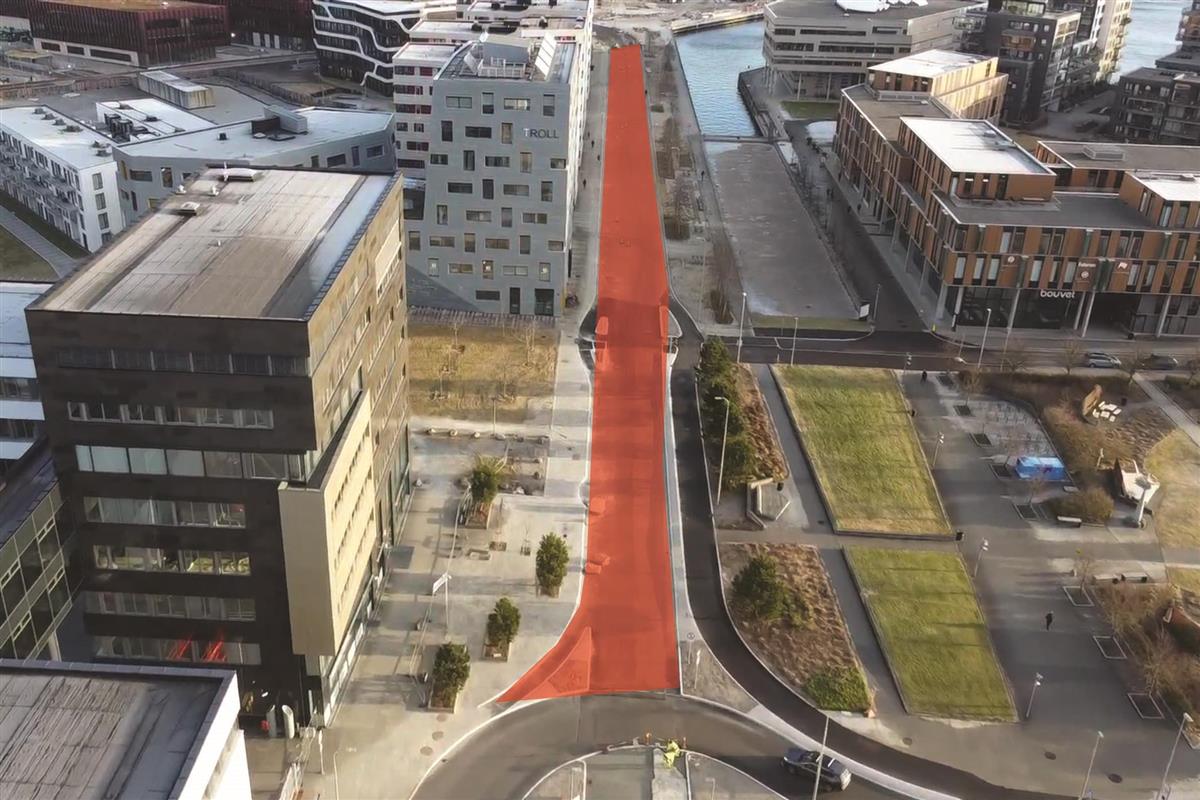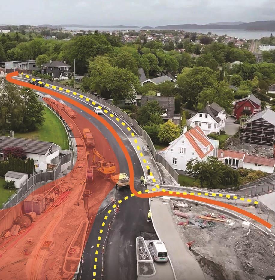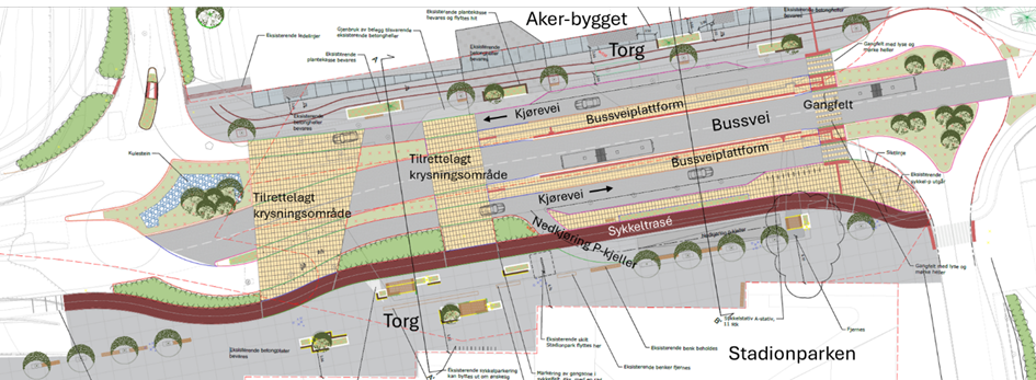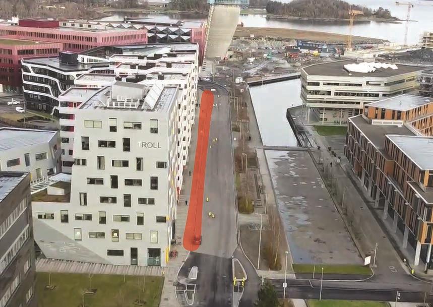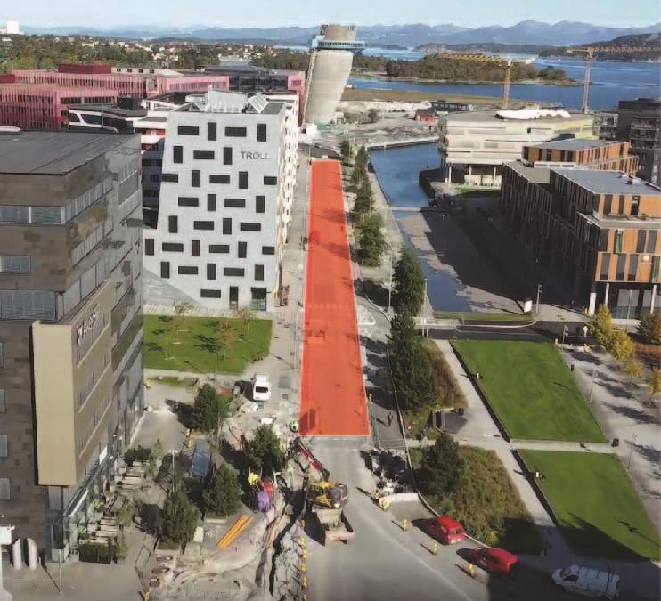På vestsiden av det nye lokket holder vi på å bygge gang- og sykkelfelt fra Austtunsletta til Diagonalen.Boganesveien ved Jåtten skole