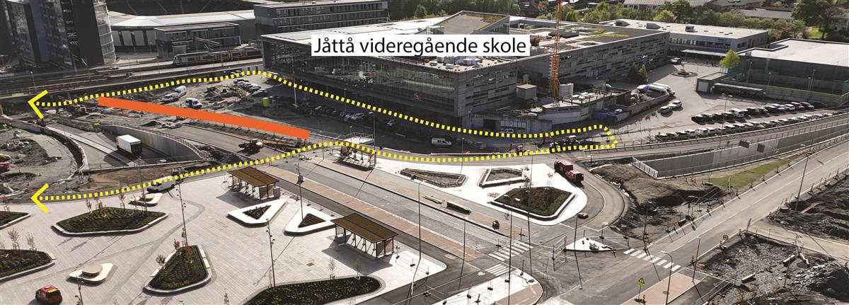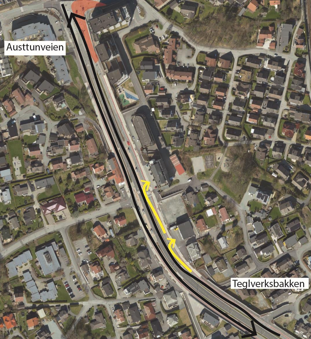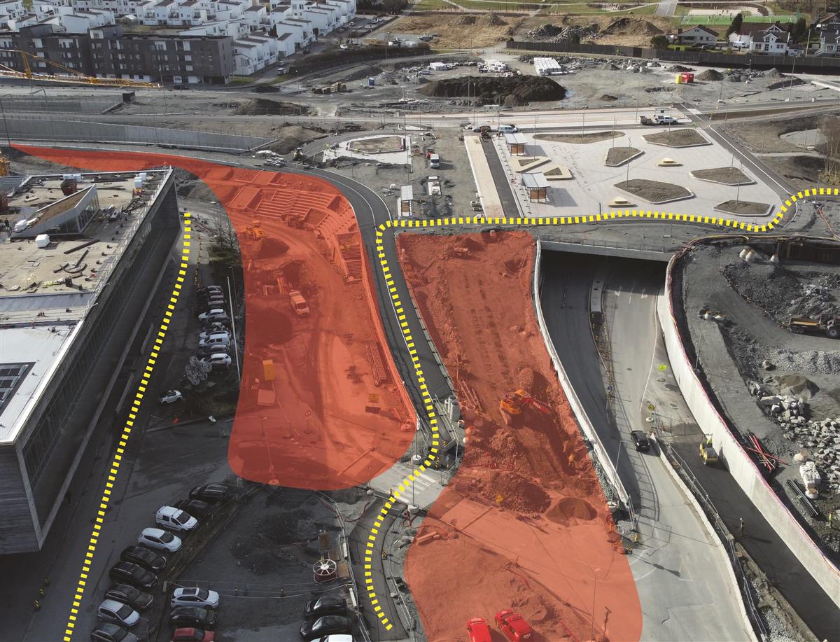 Ved Austtunsletta holder vi på å tilbakeføre parkområde som i byggeperioden har blitt benyttet som midlertidig parkeringsområde. I dette området holder vi også på å tilbakeføre private parkeringsplasser. Fra Austtunsletta mot Diagonalen etablerer vi gang- og sykkelvei, samt vi skal koble oss på eksisterende gangvei ved Jåttåstien.