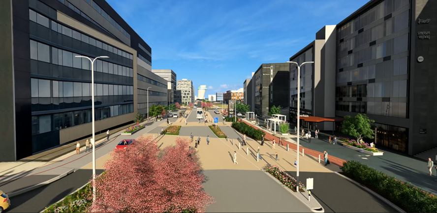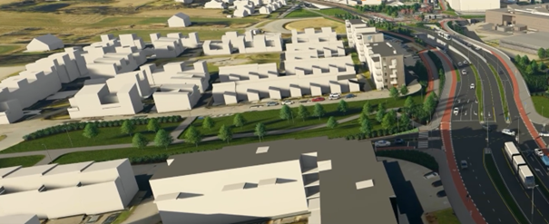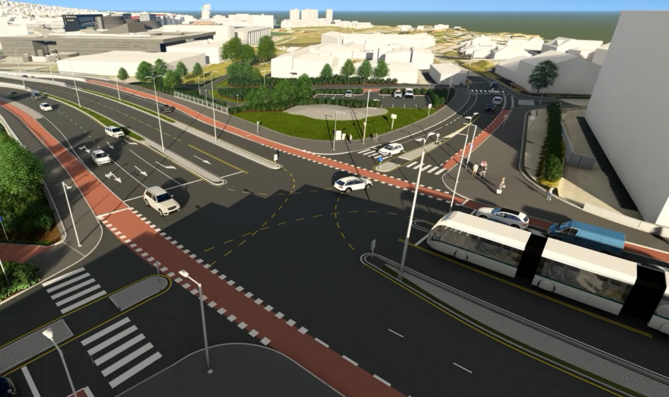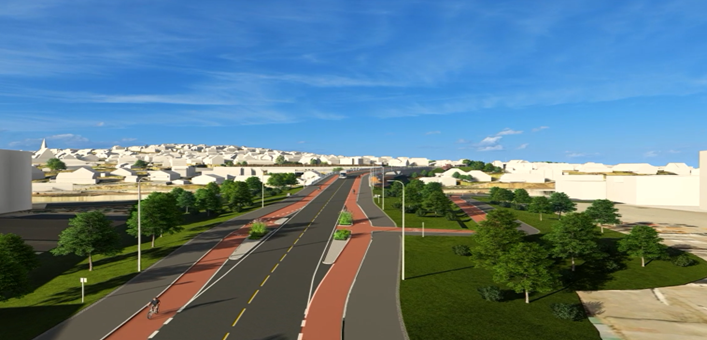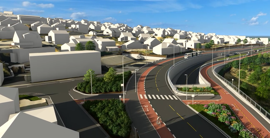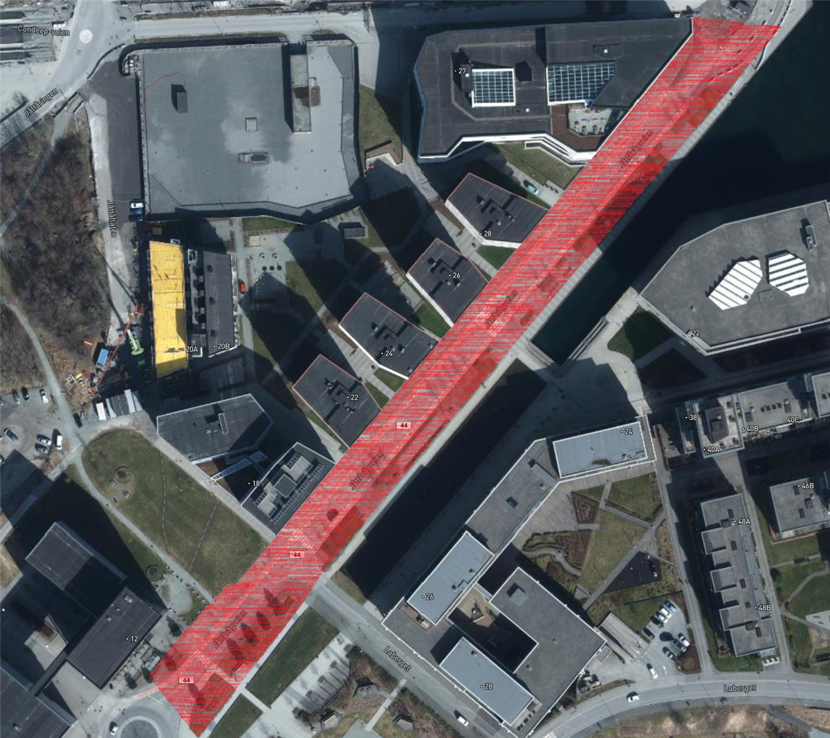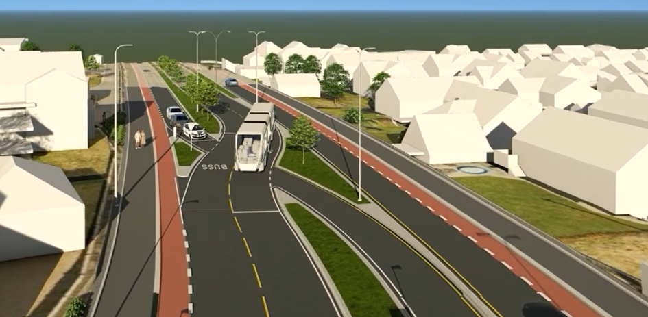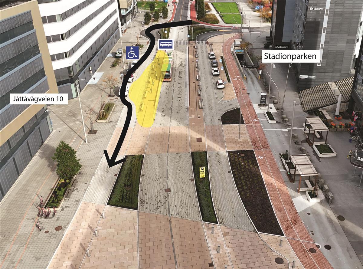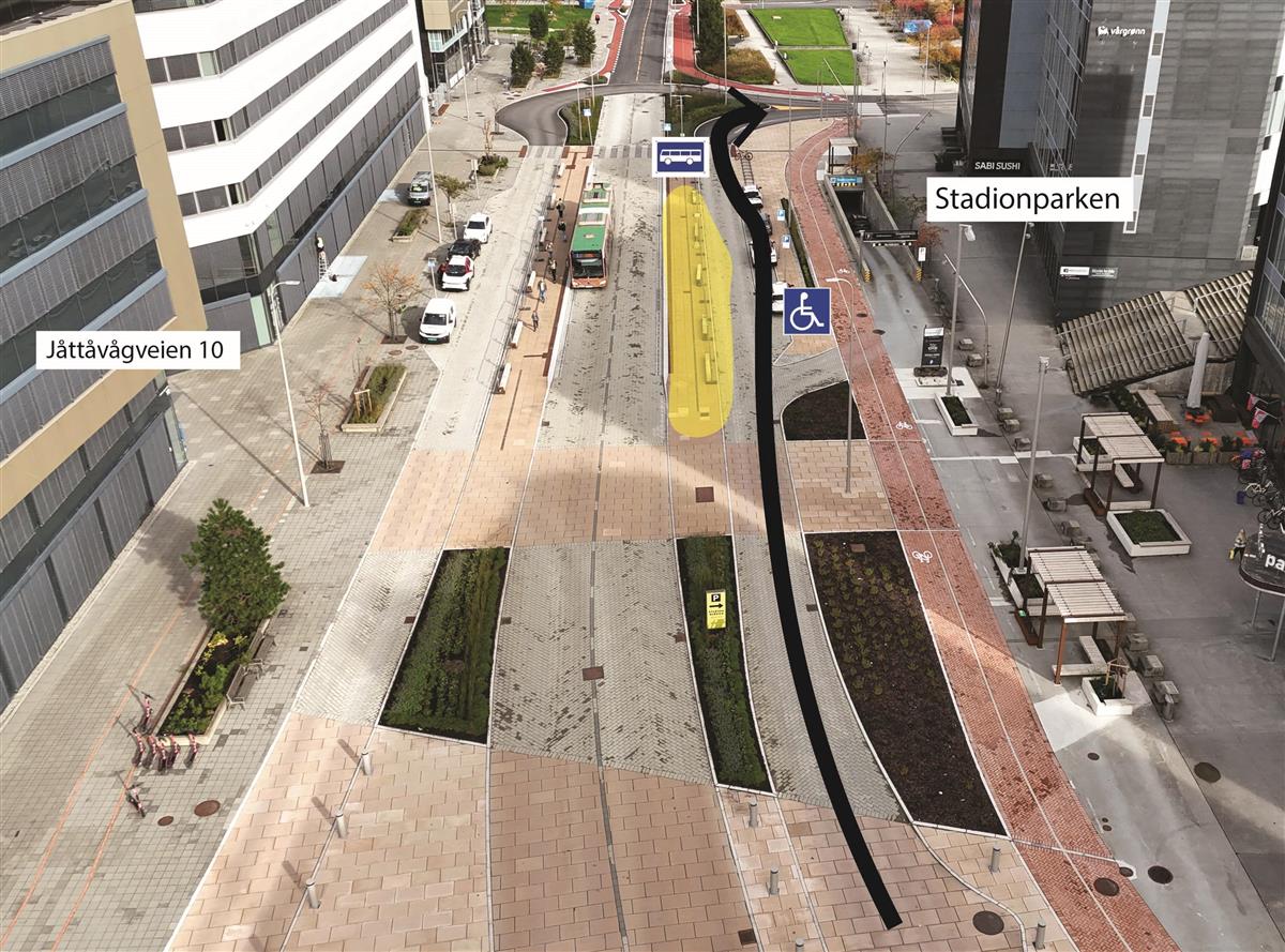 På østsiden og vestsiden av Boganesveien skal vi bygge gang- og sykkelfelt i et område. Uteområde langs Jåtten skole skal også tilbakeføres.Ny vei gjennom Jåttåflaten