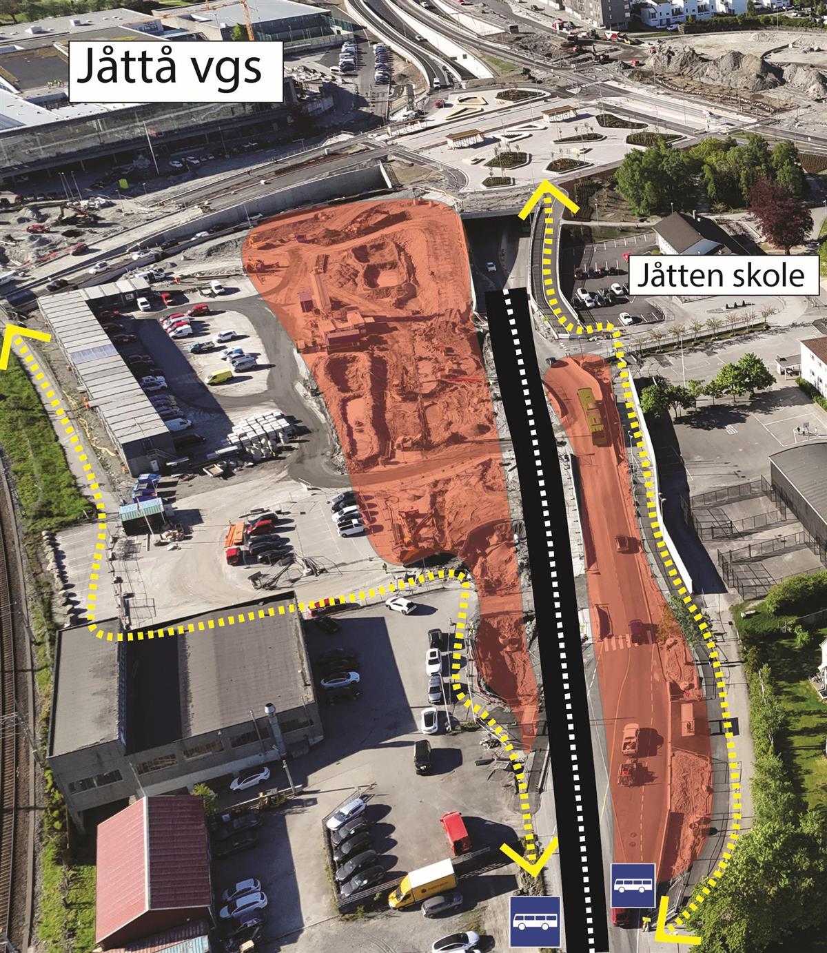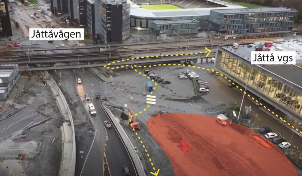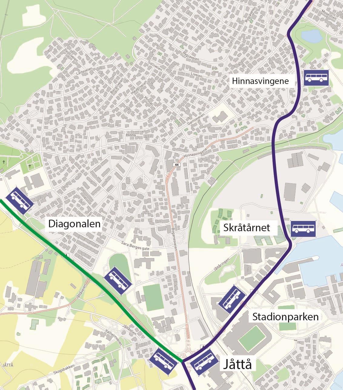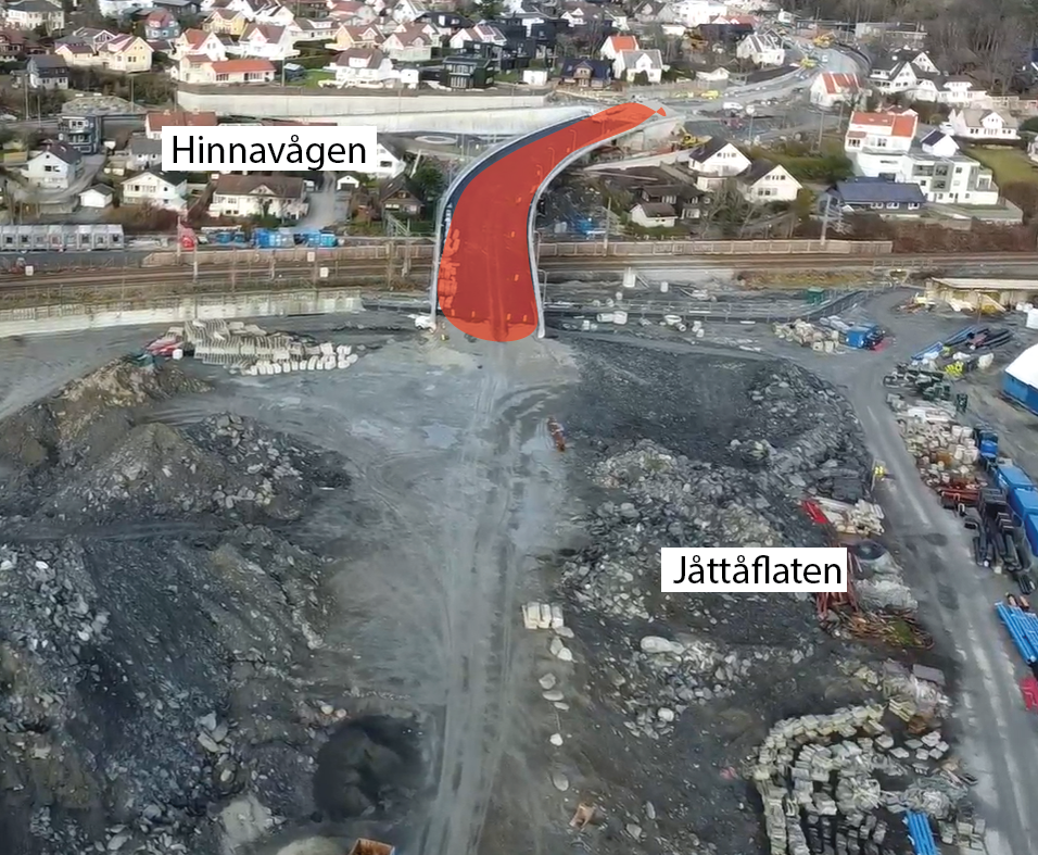 I Jåttåflaten har selve Bussveien tatt form. Det gjenstår noe arbeid med gang- og sykkelfelt, samt sideområder.Hinnasvingene