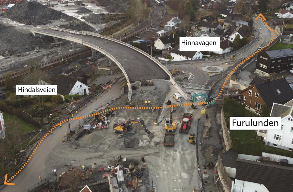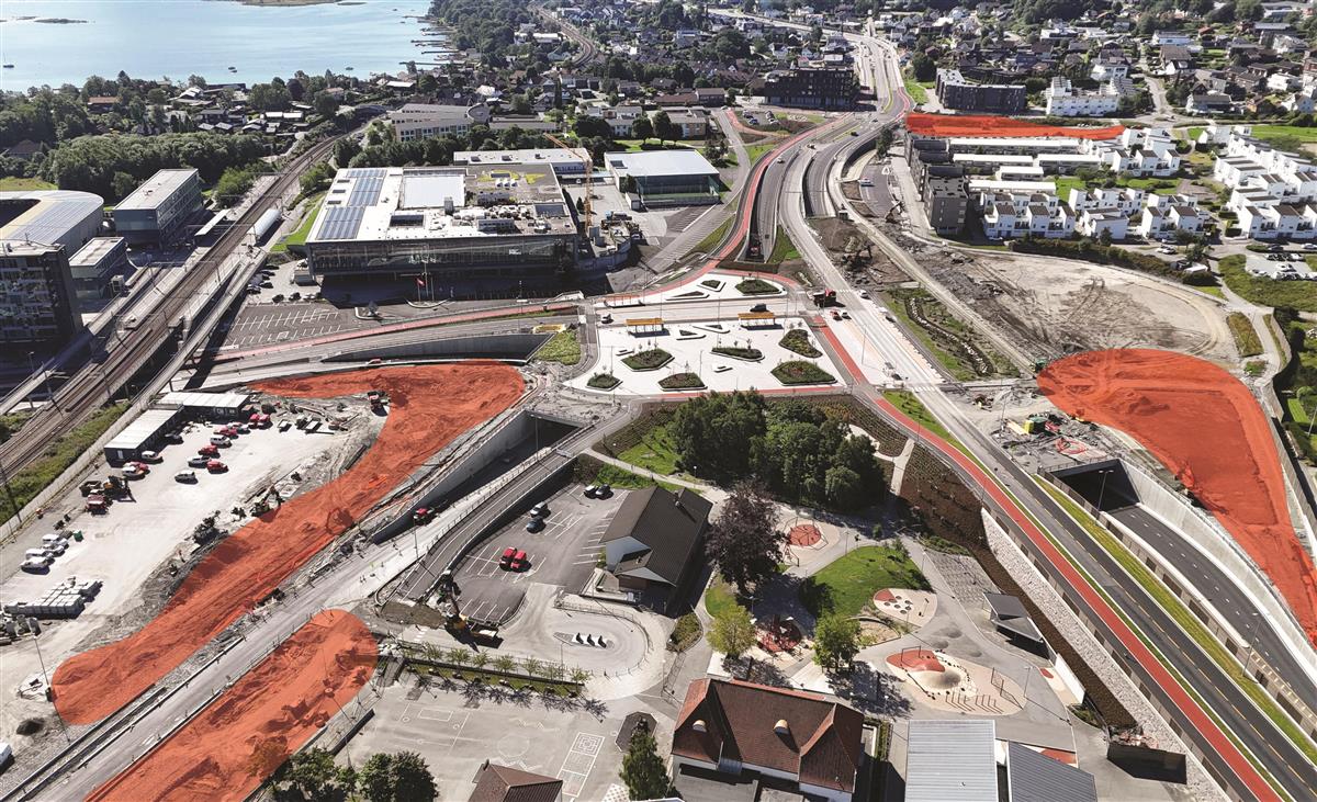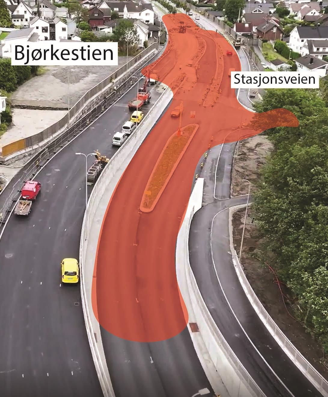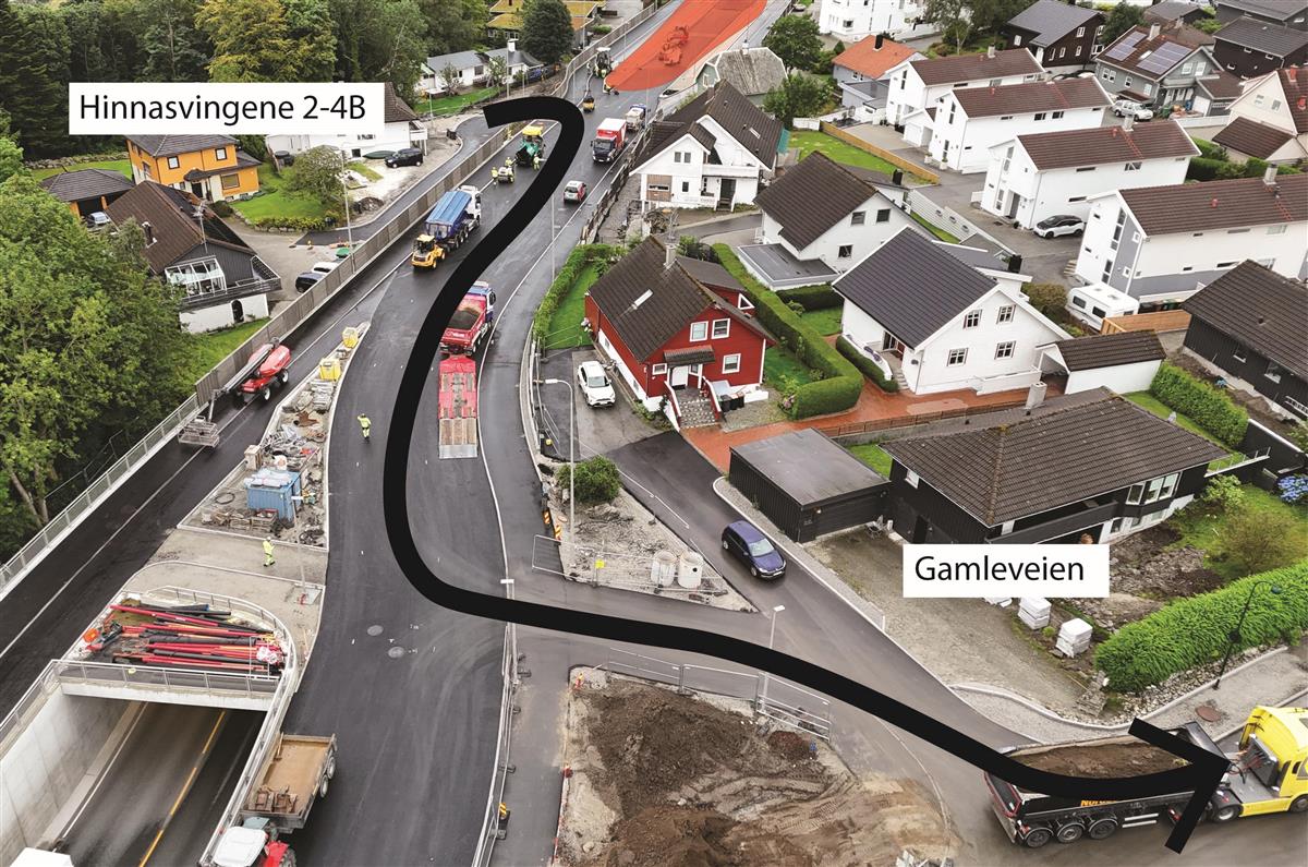 I Hinnasvingene holder vi på å bygge ny bussholdeplass. Det gjenstår også arbeid med å tilbakeføre private eiendommer.Systemskifte ved Stasjonsveien