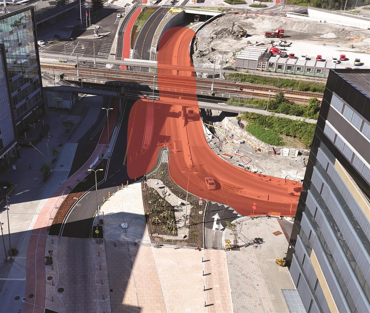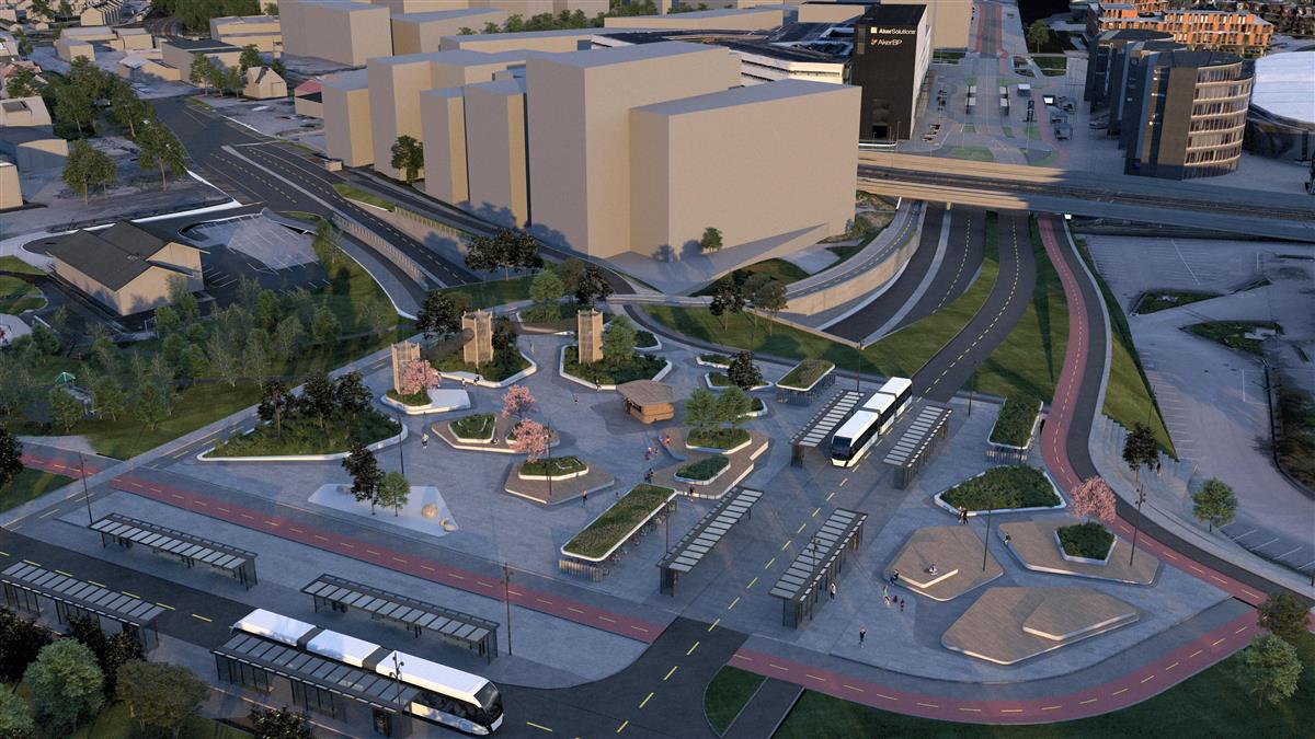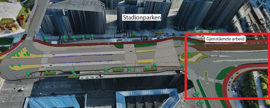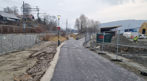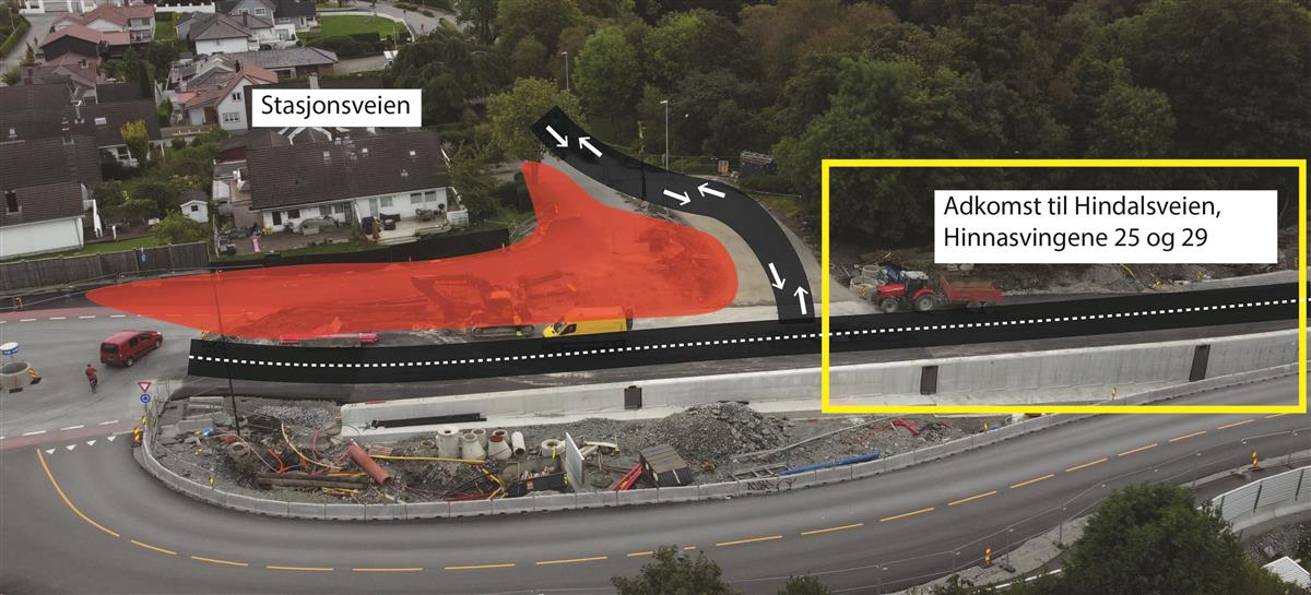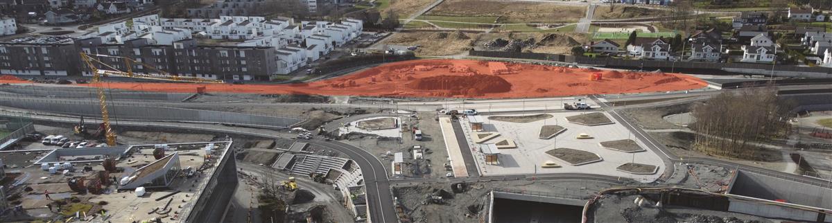 I Hinnasvingene holder vi på å bygge ny bussholdeplass. Det gjenstår også arbeid med å tilbakeføre private eiendommer.Systemskifte ved Stasjonsveien