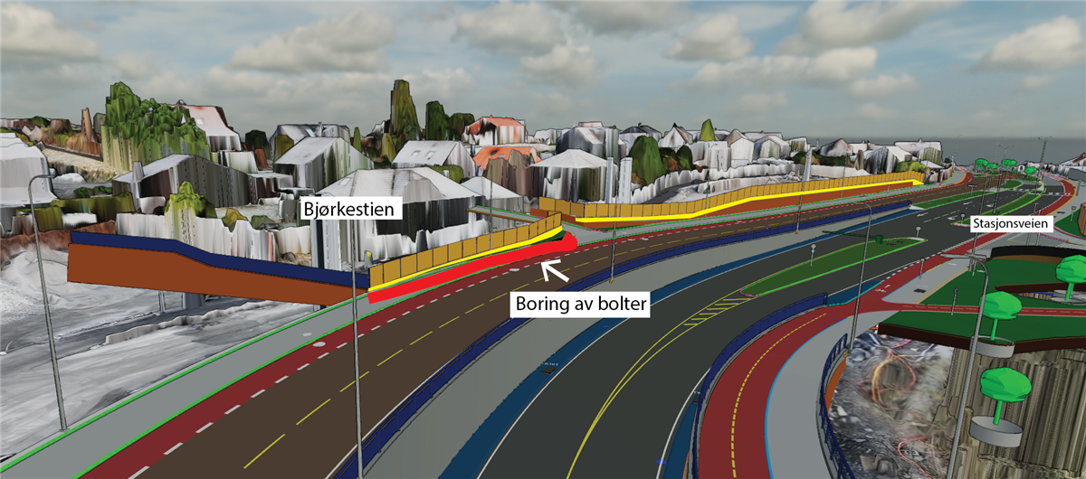 I nordlige del av Boganesveien, langs Jåtten skole holder vi på å bygge ferdig kjørevi og gang- og sykkelvei fra Karusellkrysset. I sommerferien skal vi tilbakeføre resterende berørt område i Jåtten skole. På vestsiden av Boganesveien, mot jernbanen, er vi i sluttfasen med å ferdigstille jetpeling. Når dette arbeidet er ferdig skal vi starte å bygge gang- og sykkelfelt, samt tilbakeføre riggområde. Området skal være ferdig asfaltert i løpet av august.