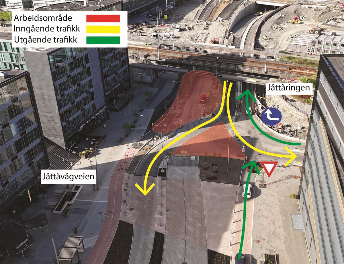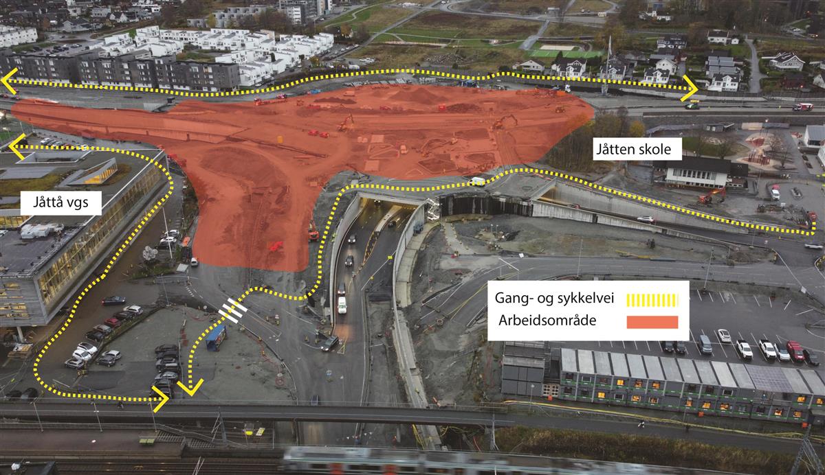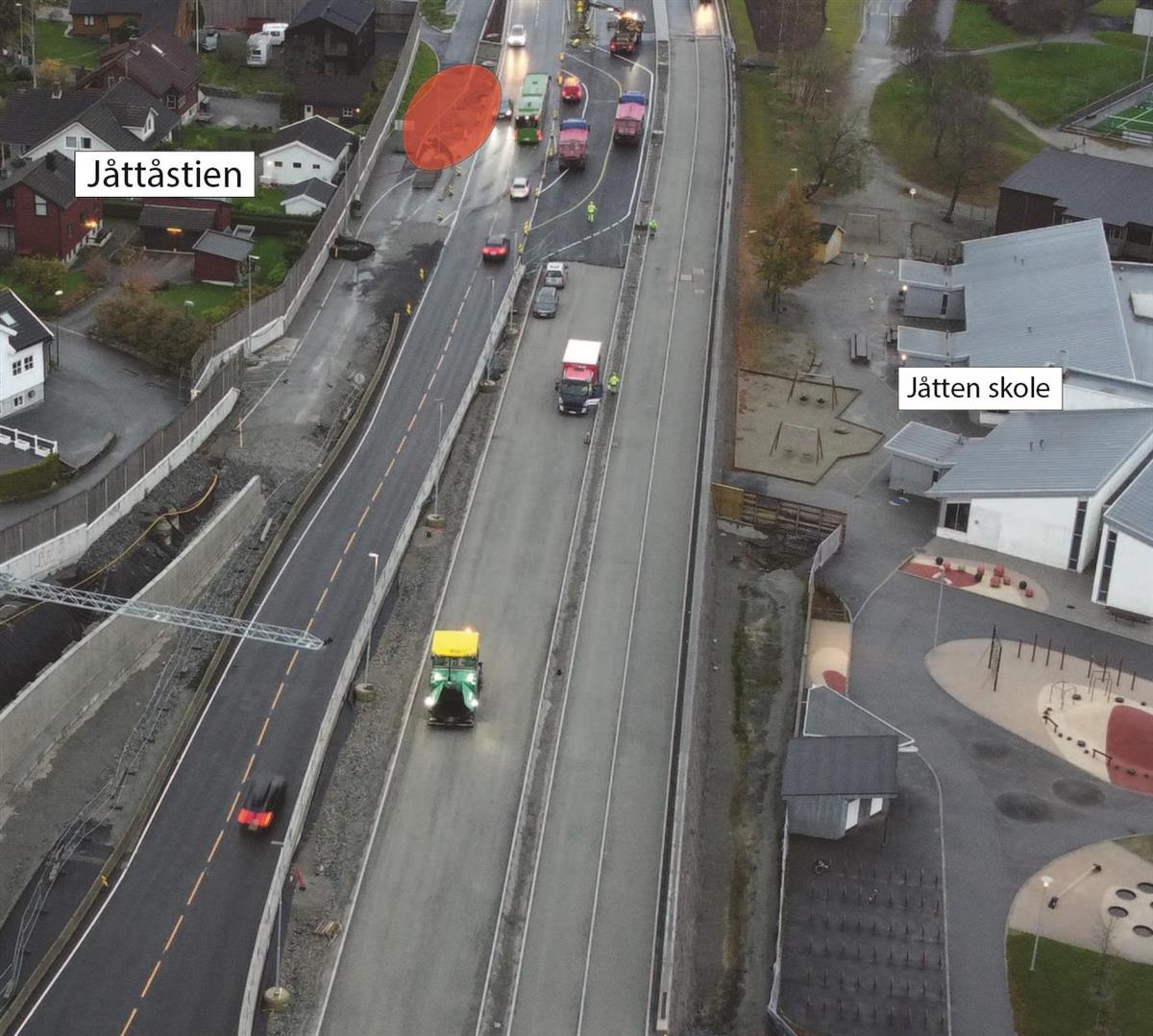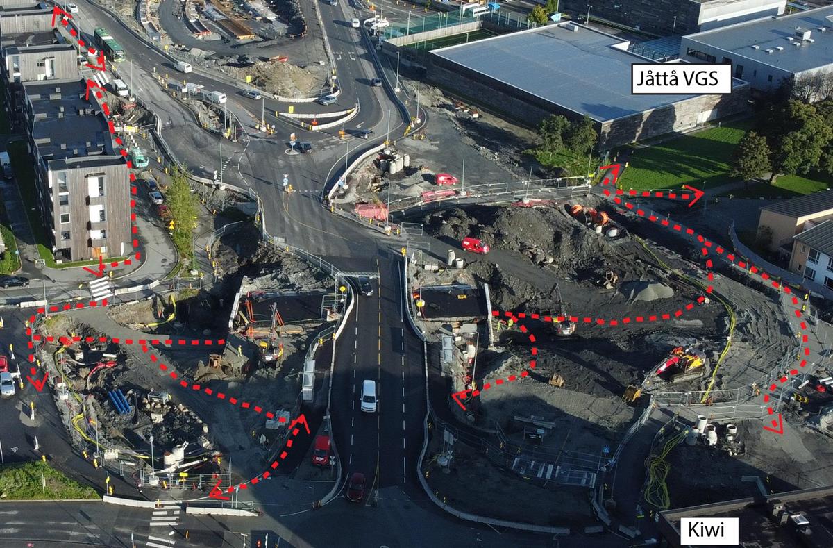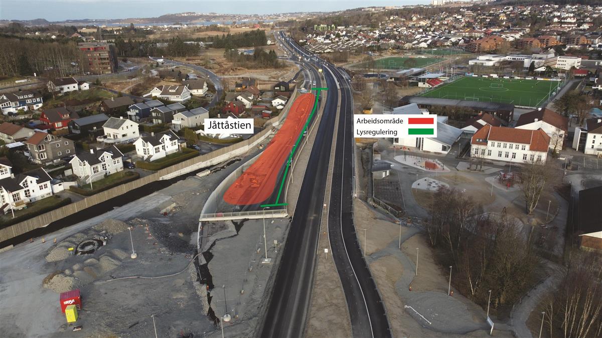 I Jåttåvågveien er store deler av arbeidet ferdig.Videre gjennom Jåttåflaten holder vi på å ferdigstille sideområder, samt bygge ferdig gangveier. Siste lag med asfalt legges i uke 31 og 32.