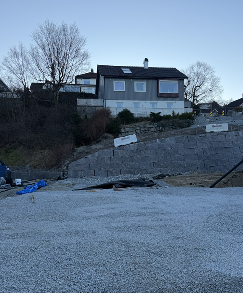 Vi har nylig tatt ned trær mellom Gravarstunet 50 og 52. Vi starter i disse dager opp med arbeider med muren nedenfor Gravarstunet 52.